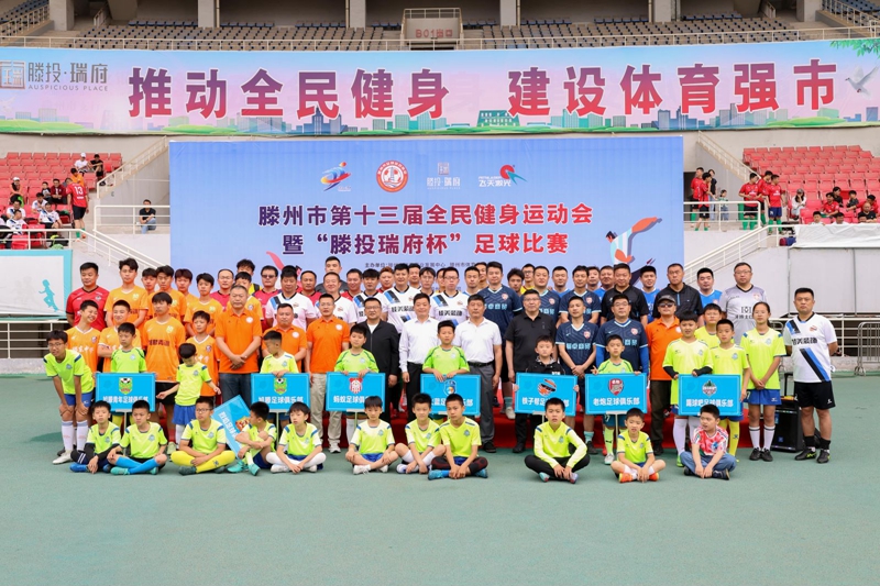 6月4日,滕州市第十三屆全民健身運動會暨“滕投·瑞府杯”足球比賽在市體育中心體育場隆重舉行。本次比賽由滕州市體育事業(yè)發(fā)展中心、滕州市體育總會主辦,滕州市足球運動協(xié)會承辦,山東滕建投資集團有限公司等單位協(xié)辦。滕州市體育事業(yè)發(fā)展中心黨組書記、主任丁濤,滕州市體育事業(yè)發(fā)展中心黨組成員、副主任、滕州市體育總會