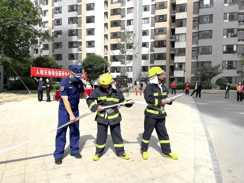 活動當天,人和天地物業(yè)服務中心組織工作人員開展了火情處置消防演練,并邀請到市消防大隊、財貿(mào)醫(yī)院工作人員講解滅火器、消防栓、消防水帶等器材的使用方法和傷員急救知識。