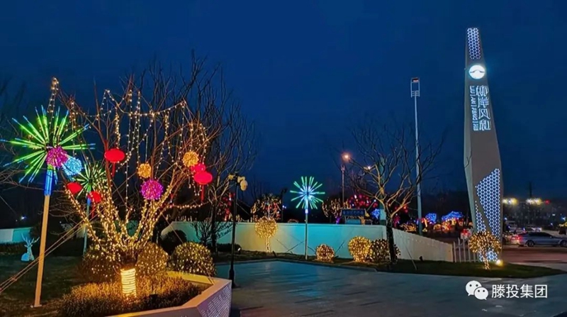當夜幕降臨在清水灣公園,散步的市民會驚喜地發現,華燈初上街頭,公園以及柳岸風和營銷中心彩燈輝映。斑斕的彩燈為夜色增添了一份喜慶與祥和,夜空被照亮了,街道被扮靚了,人們的心被點亮了。為了營造節日氣氛,滕投集團興滕置業公司積極踐行國企擔當,履行社會責任,在柳屯路沿街、清水灣公園、柳岸風和營銷中心、清水灣